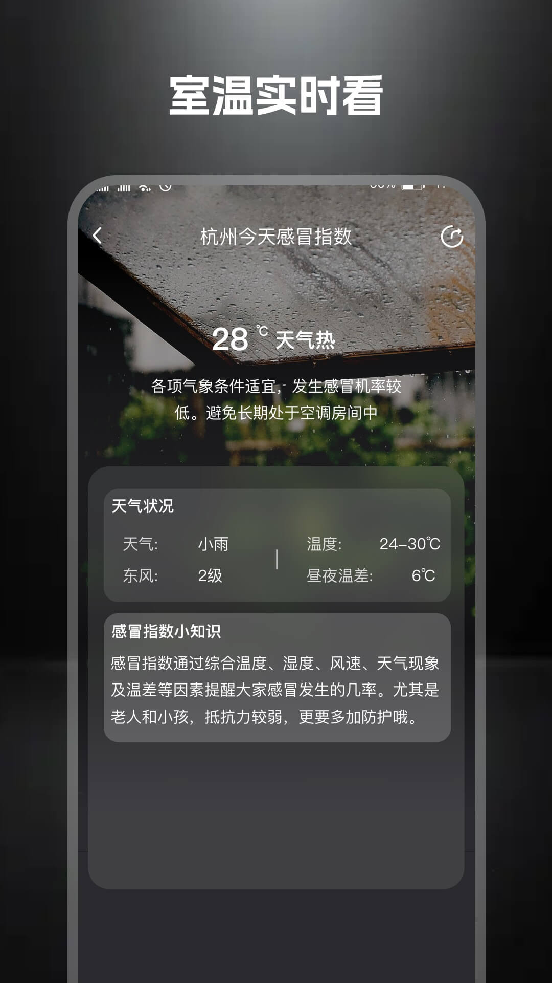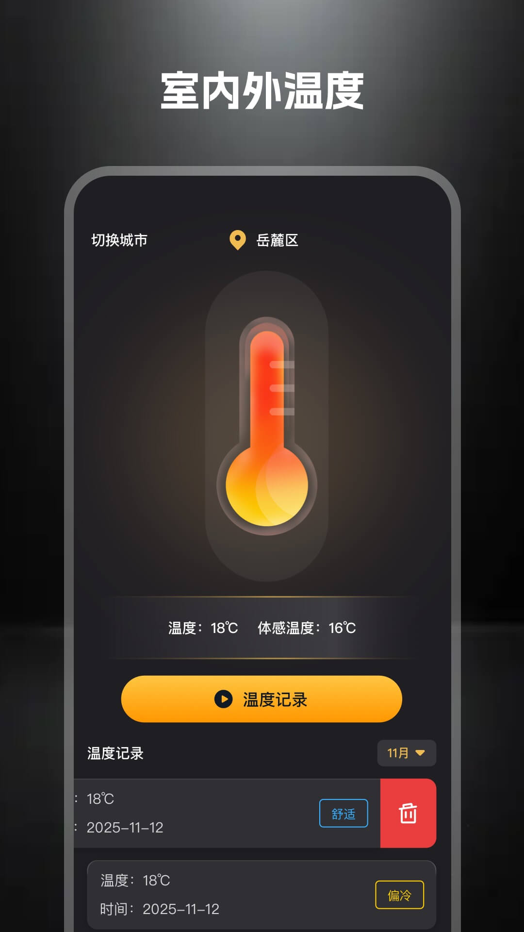 室内温度不用愁,手机室内温度计来帮忙!不管是在家、在办公室,还是其他室内场景,都能一键获取实时室温,操作简单、功能实用,让舒适感始终在你掌控之中。